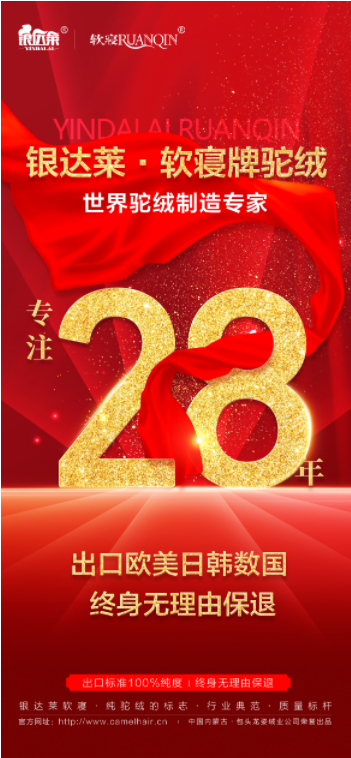 银达莱·软寝纯驼绒,近三十年,上千吨驼绒出口到国外,国内也销售出去了千万斤驼绒,被千千万万个家庭,做成了驼绒被褥、床垫,一直在用,但没听见有哪个顾客公开说自己用的啥,更没见到有顾客发朋友圈分享宣扬一下。