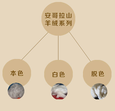 安哥拉山羊绒,别称为马海毛,取自于叫安哥拉山羊的一个品种。因为纤维具有天然闪亮的金属光泽,并且手感如山羊绒一般滑爽,而用于纺织披肩,挂毯等奢侈品。天然安哥拉绒有白色和紫色两种。本公司安哥拉绒每种颜色有四个等级。
